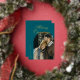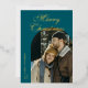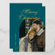 Elegant Script Arch Newlyweds Photo Teal Gold Foil Holiday Card
