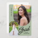 Invite your friends and family to your Graduation Party with this elegant, 2 photo, sage green and black invitation. The design features photos with an arched edge and offers custom text for your party details.