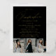 Celebrate the graduate in style with these elegant gold foil graduation party invitations, featuring a sleek black background and shimmering gold foil lettering for a sophisticated touch. The modern calligraphy script highlights key details, while three customisable photos at the bottom create a unique and personal design. Perfect for high school or college graduates, these luxe invitations set the tone for an unforgettable celebration. Personalise with the graduate’s name, party details, and photos to make this invitation truly one-of-a-kind!