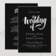 This elegant black-and-white wedding invitation is perfect for a modern wedding. The simple design features elegant white calligraphy on a black background. The invitation card includes the wedding details on the back instead of paying for a separate enclosure card.