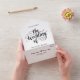 This elegant black-and-white wedding invitation is perfect for a modern wedding. The simple design features elegant black calligraphy on a clean white background.