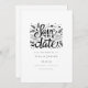 This pretty script black and white save the date announcement card features laurel leaves and hearts. Add your special announcement details in a classic text.