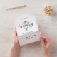 This elegant black-and-white wedding invitation is perfect for a modern wedding. The simple design features elegant black calligraphy on a clean white background.