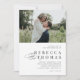 A classic black and white photo wedding invitation with horizontal photo and elegant calligraphy script and clean editable text. Click the edit button to customise this design.
