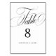Elegant Script Black and White Wedding Table Number features a large, bold script and elegant styling.
