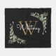 Elegant Script Black Gold Monogram Greenery Fleece Blanket