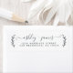 Chic, modern black and white wedding return address label with your names in off-black elegant handwritten script calligraphy with a stylish touch of rustic foliage on a white background. Simply add your names and address. Exclusively designed for you by Happy Dolphin Studio. If you need any help or matching products please contact us at happydolphinstudio@outlook.com. We're happy to help you make your wedding the most beautiful day!