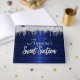Have guests sign their names with this sweet 16 guest book. The design features an elegant script with blue metallic background with silver glitter drips. Customise with the birthday girl's name to make a keepsake for her wonderful day!