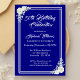 Elegant Script Blue White Rose 50th Birthday Invitation