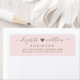 Elegant, Modern Blush Pink and Gold Hand Lettered Wedding Return Address Labels. Featuring a pretty hand-written script bride and groom's first name template with swash-tail font, little heart shape between the names. Easy to personalise them with your names and return address info.