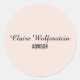 Elegant script blush pink professional personalised business classic round sticker. An elegant design that projects a confident company image. Perfect for marketing, business branding, favour stickers and envelope seals. Designed by Thisisnotme©