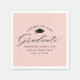Elegant graduation napkins featuring a graduation cap with the phrase "Cheers to the Graduate" in a black calligraphy script on a blush pink background. Personalise the blush pink graduation napkins with the graduate's name, school name, and graduation year. The simple graduation napkins are perfect to use for your high school or college graduation party.