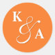 Elegant Script Bright Orange Wedding Monogram Classic Round Sticker