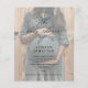 A simple and chic Photo Baby Shower invitation featuring elegant script calligraphy details and classic type overlay on a portrait vertical photo on the front. The back has an additional photo and text. Click the edit button to customise this design.
