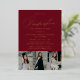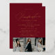 Invite guests to celebrate the grad with our elegant gold foil graduation party invites! The design features a modern calligraphy script with your graduation party details displayed in gold foil lettering with a burgundy background. The unique graduation party invites feature three photos in a row at the bottom of the design. Designed to coordinate with our Elegant Minimalist graduation collection.