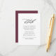 Minimalist Burgundy and White Wedding Guest Details Card with Elegant Calligraphy.