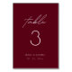 Modern Minimalist burgundy Wedding table number with elegant script . Design features an handwritten font and modern minimalist design. To change details, click "Personalise".