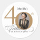 Elegant Script Calligraphy 40th Birthday Classic Round Sticker. And elegantly designed special birthday celebration design, featuring a custom photo of birthday person and script calligraphy with vintage flourish elements. Simple enough to fit a variety of themes and colours!