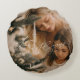 Elegant Script Calligraphy Love Always with Photo Round Cushion
