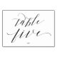 Simple Elegant Calligraphy Script Wedding or Dinner Party Table Number Five written out in beautiful flowing fancy letters. A stylish yet simple formal design in black and white or any background colour you choose. Just click the customise further link, shown under the text personalisation area on the right, and choose your custom colour background. This sign poster template makes it fast and easy to create stunning additions to your wedding decor. Signs can be enlarged, there are many sizes to choose from, as well as options for custom framing and matting. Welcome to our wedding custom signage.
