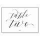 Simple Elegant Calligraphy Script Wedding or Dinner Party Table Number Two written out in beautiful flowing fancy letters. A stylish yet simple formal design in black and white or any background colour you choose. Just click the customise further link, shown under the text personalisation area on the right, and choose your custom colour background. This sign poster template makes it fast and easy to create stunning additions to your wedding decor. Signs can be enlarged, there are many sizes to choose from, as well as options for custom framing and matting. Welcome to our wedding custom signage.