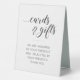 This beautiful wedding table tent sign is a nice compliment to the table where cards and gifts are collected at the reception. The design features a combination of black handwritten and block fonts. Part of the Alejandra collection.