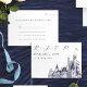 This formal wedding RSVP card features a vintage illustration of a castle, which you can replace with an image of your wedding venue (transparent or white background preferred). Elegant dark blue lettering lays out the title, whether the guest will accept or decline, and the date to respond by. There's also a line for you to hand-write the guest's ID number (which is helpful when keeping track of many RSVPs).