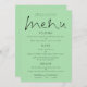 Elegant Script Celadon Green Wedding Menu Card, with a stylish set script for the header Menu. Easily personalise the rest of the text to your own details which includes alternatives for your vegan or vegetarian options. You can also change text styles and colours as well as the background colours via the customise further option if you wish.