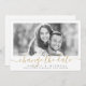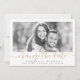 Modern script "change the date" in gold colour, with couple's photo, simple and elegant. inform your wedding guests the updated information with this photo announcement.