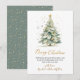 Modern Elegant Calligraphy Script Christmas Tree Non Photo Christmas Cards. This festive simple minimalist Christmas Holiday cards features a watercolor christmas tree with decoration gold balls and confetti and a „Merry Christmas” greeting text which is written in a nice hand lettering font type in gold and white. On the back side "snowy" golden glitter or sparkling gold confetti on dusty green background. This festive Custom Personalised Christmas Cards are a great way to remind loved ones that you're thinking of them this Winter Holiday Season.