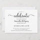 Create your own stylish graduation party invitations featuring a modern black typography design which reads: "class of [YEAR] Graduate." Replace the sample photo with one of your grad and customize the year and name. The white back of the invite features the word "celebrate" in a black script font. Replace the black sample text for your graduate and event. Personalize it for any graduate: high school, college, graduate school, law school, medical school, or trade school.