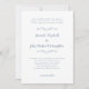 Elegant and simple wedding invitations in beautiful dusty blue and white are classic, formal and timeless. Borderless design allows you to easily choose the paper shape for your invitation to invite guests to your celebration. Two decorative flourishes each containing a single heart delicately envelope the name of the bride and groom. Three lines of text at the top are perfectly configured to list the names of the parents of the bride and may be easily configured to suit your needs. For optimal results skip lines and capitalise as in sample. Other text configurations are available in this invitation suite design.