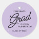 This elegant script grad sticker features a light purple and black design with the message "Congrats Grad". Personalised the sticker with the name of the graduate and year.