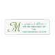 This is a lovely elegant white and gold and green return address label with a unique custom multi-colour gold Monogram and your first names in special swirl calligraphy. It creates a sophisticated glamourous look for the address labels. For yourself or lovely as a gift. If you have any design questions or require assistance, just send an email to charmdesignstudio@rcn.com and we'll be delighted to assist.