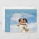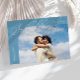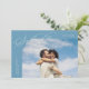 Elegant and stylish save the date card featuring a script text that says "save the date." One photo in the font and one on the back. The background is denim blue.