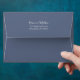 Elegant dusty blue envelope with delicate blush and burgundy floral detail inside. Outside flap modern hand written Script monogram area for you to add your name(s) and address.Part of our "Heaven in Rose Floral and Dusty Blue" wedding and events collection.