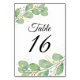 Elegant wedding table cards with eucalyptus greenery design and black text on white background. The template makes it easy to customise the table number on both sides.