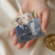 This beautiful ornament features a full photo display paired with an elegant script and serif text combination reading “Father of the Groom”, accented with a delicate heart element. Personalise it with your wedding date to create a truly meaningful keepsake. A soft, subtle fade at the bottom of the photo adds a graceful, timeless touch, making it perfect for display on the holiday tree or as a cherished memento. Ideal for gifting to the father of the groom, this ornament is a heartfelt way to honour her love, guidance, and support on your wedding day. Design by ©Moodthology Papery