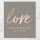 This wedding wine bottle label features a hand-lettered look brush script type with a faux rose gold foil texture. Personalise with names and a date.