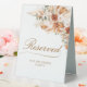 Elevate your wedding decor with this Elegant Script Floral Boho Wedding Reserved Table Tent Sign featuring elegant terracotta floral accents. Perfect for designating reserved seating, this sign blends minimalist calligraphy with boho-inspired floral elements. The combination of stylish, bold typography and rustic touches makes this sign ideal for modern, chic weddings. Whether your theme is rustic, bohemian, or elegant, this sign will fit seamlessly into your decor. Add a bright, bold touch to your reception while ensuring your seating arrangements are beautifully labelled.