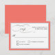 A beautifully elegant wedding RSVP card featuring calligraphy script text accents with a border in the trendy colour "Living Coral". You can also customise this colour to match your wedding colour scheme by selecting a different background colour on both the front and back of this RSVP card. The simple, tasteful style works well for weddings in all seasons. Matching wedding invitations and other wedding products are available in this design.