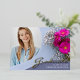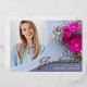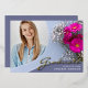 A unique photo graduation announcement card, featuring design elements of elegant handwritten style script with the word "Graduate" in real foil (foil colour options are gold, silver and rose). The graduates photo is enhanced by beautiful pink and white flowers on shades of dusty blue. The back of the card offers personalised text spaces for information about the graduation and future journey. To see more items like this, visit my store here at "www.Zazzle.com/LakeViewCardCo". Thanks
