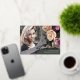 A unique photo graduation announcement card, featuring design elements of elegant handwritten style script with the word "Graduate" in real foil (foil colour options are gold, silver and rose). The graduates photo is enhanced by a beautiful collection of purple, violet and coral coloured rose flowers with sage green. The back of the card offers personalised text spaces for information about the graduation and future journey. To see more items like this, visit my store here at "www.Zazzle.com/LakeViewCardCo". Thanks