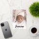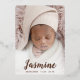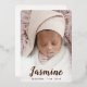 Elegant Script Foil Birth Announcement Card featuring your newborn baby photo on the front with details like birth date, weight and lenght and the baby’s name in real foil embellishment. The text in foil finishes is all customisable for your personalisation.