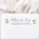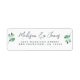 Chic, modern black and white wedding return address label with your names in off-black elegant handwritten script calligraphy on a white background with a stylish touch of green eucalyptus foliage. Simply add your names and address. Exclusively designed for you by Happy Dolphin Studio. If you need any help or matching products please contact us through our store chat. We're happy to help you make your wedding the most beautiful day!