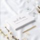 Memorial funeral guestbook featuring a the name in an elegant script font with custom text below. White or any colour background.