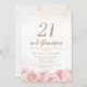 Modern chic "21 and glamourous" script, trendy faux gold glitter and blush pink watercolor floral design, elegant and stylish, great 21st birthday party invitations.