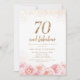 Modern chic "70 and fabulous" script, trendy faux gold glitter and blush pink watercolor floral design, elegant and stylish, great 70th birthday party invitations.