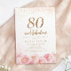 Modern chic "80 and fabulous" script, trendy faux gold glitter and blush pink watercolor floral design, elegant and stylish, great 80th birthday party invitations.