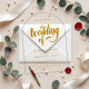 This elegant white-and-gold wedding invitation is perfect for a modern wedding. The simple design features elegant gold calligraphy on a clear acrylic background.
